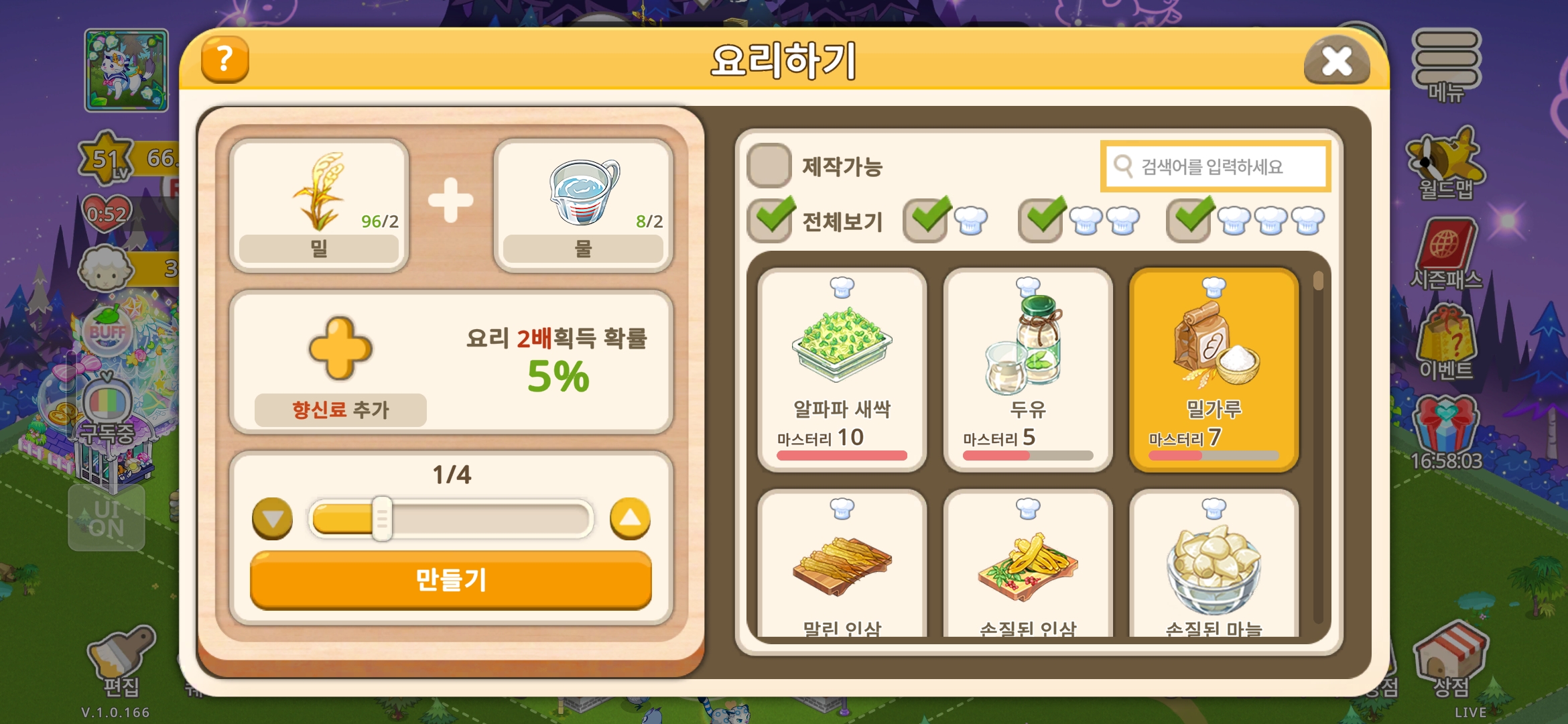 요리할 때 인벤토리에 재료가 몇 개 남았는지 표시해주시면 좋겠어요