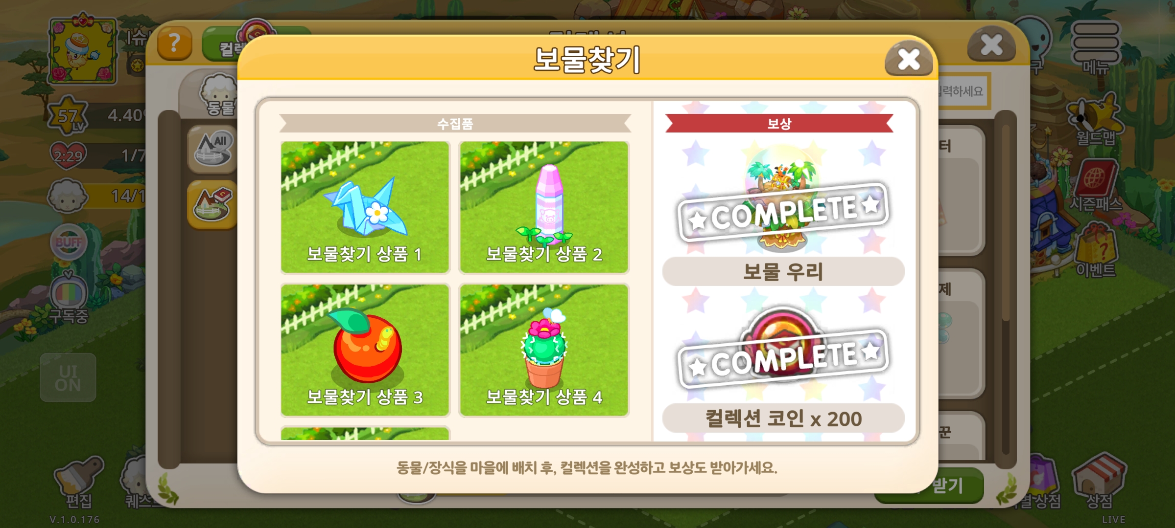 다모았는데 보물우리를 받지못했는데 오류일까요?ㅜㅠ