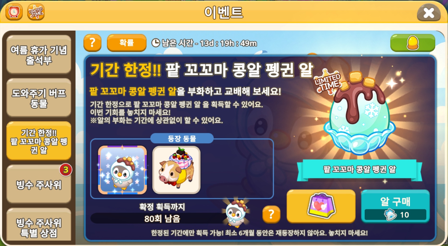 기간 한정으로 재등장 미정 / 천장 80회(800벨) / 이월 불가능한 천장