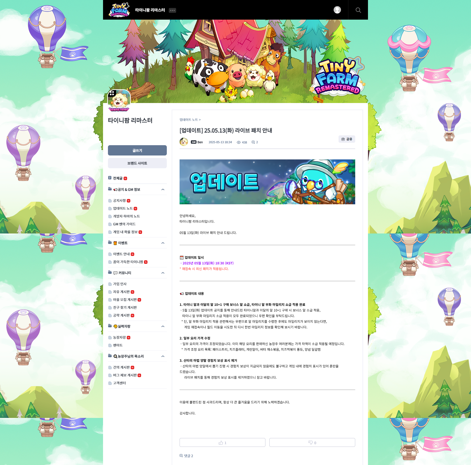 [업데이트] 25.05.13(화) 라이브 패치 안내
