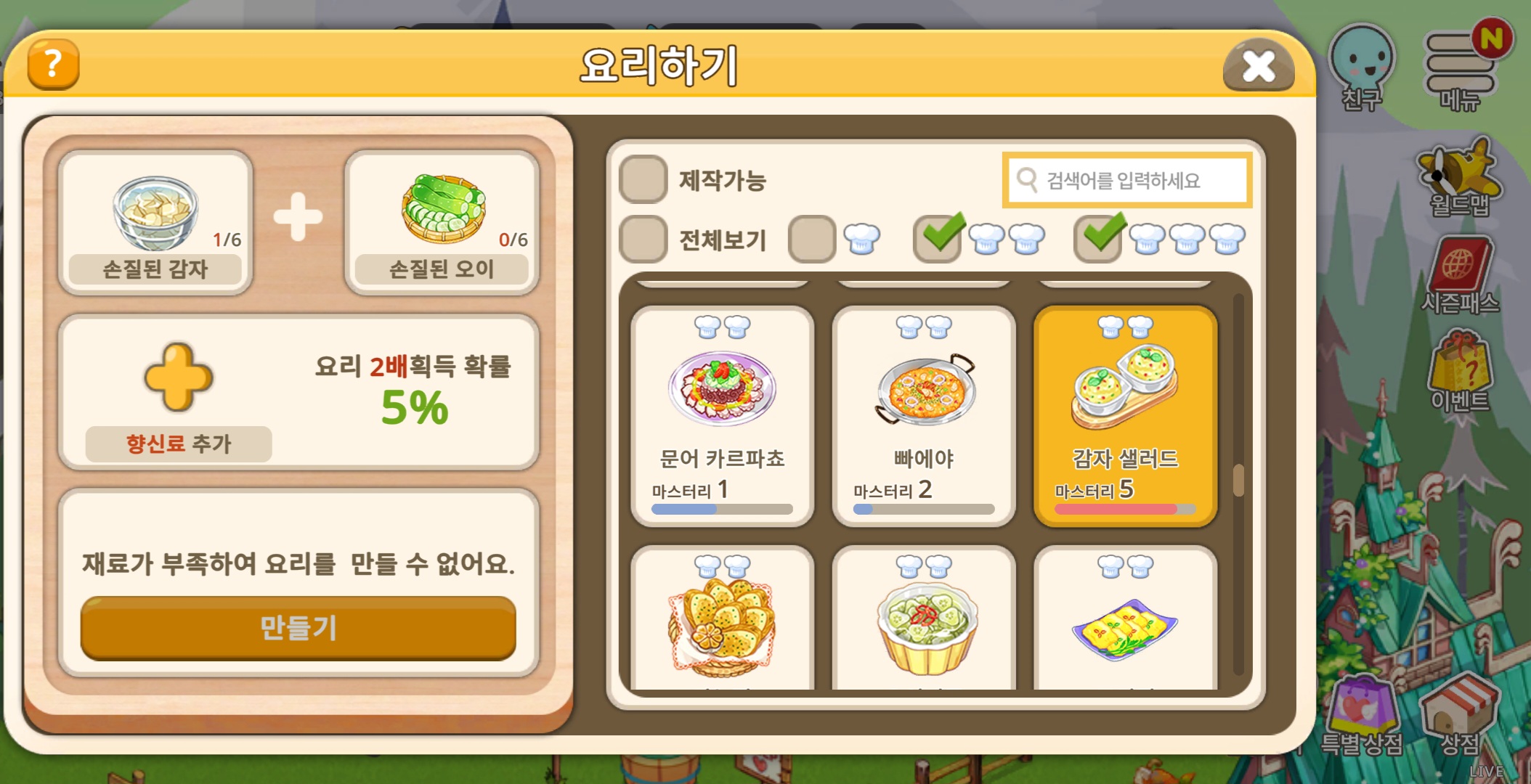 다른 요리들은 제가 최근에 안 만들어봐서 다른 요리에도 이런 버그가 생기는지는 잘 모르겠어요.