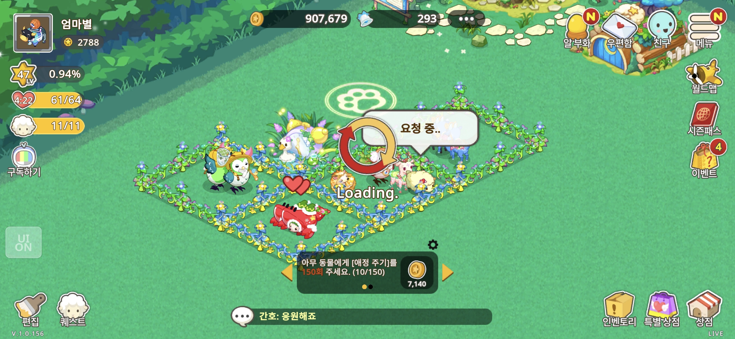계속해서 교배는 이루어 지지 않으며 로딩만 뜹니다. 몇달 째 이어지고 있으며 게임을 껐다 켜도 같습니다. 조치 부탁 드립니다.