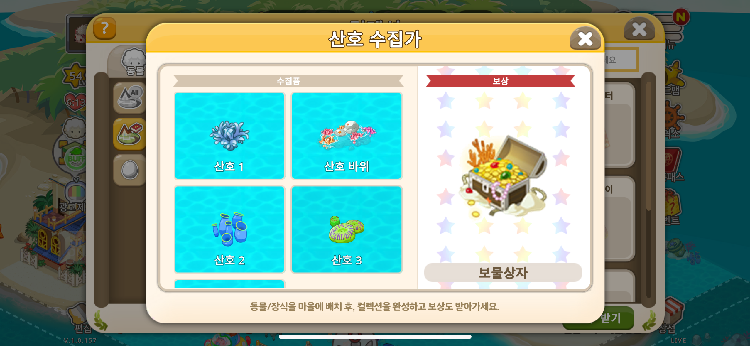 컬렉션-산호수집가 수집 완료하였으나 최종 보상인 보물상자 획득이 불가하여 확인 요청드립니다.