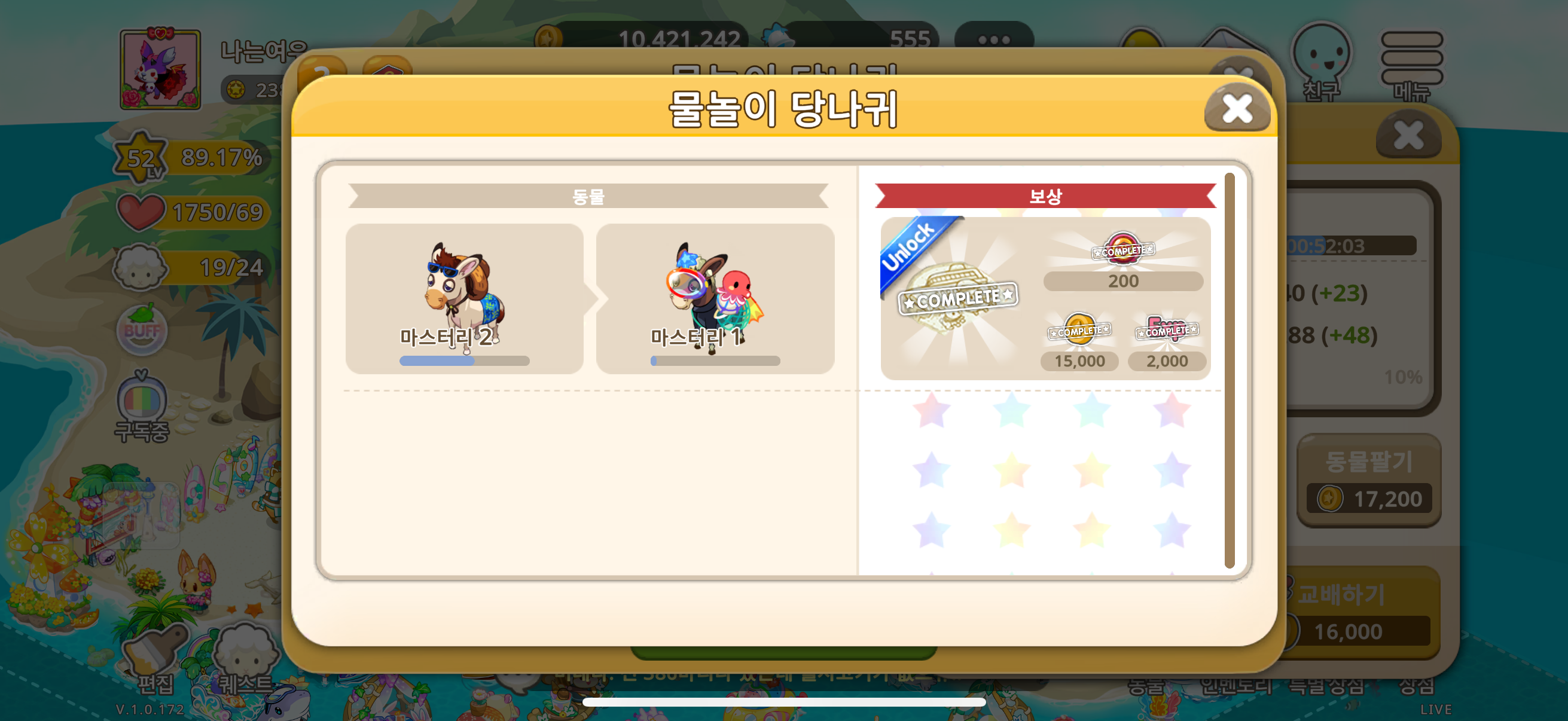 동물 다 교배했는데 보상을 받았는데 컬렉션상점에 없어요