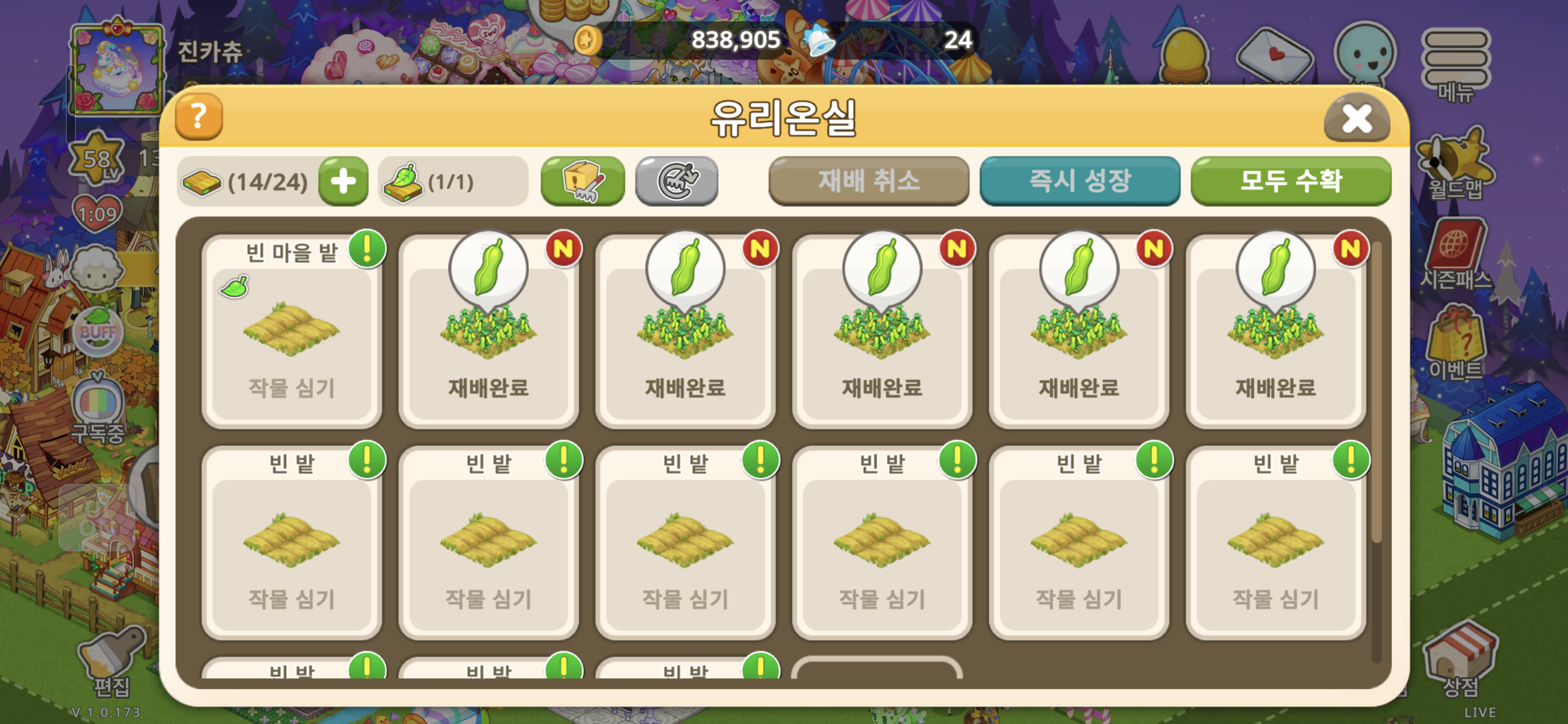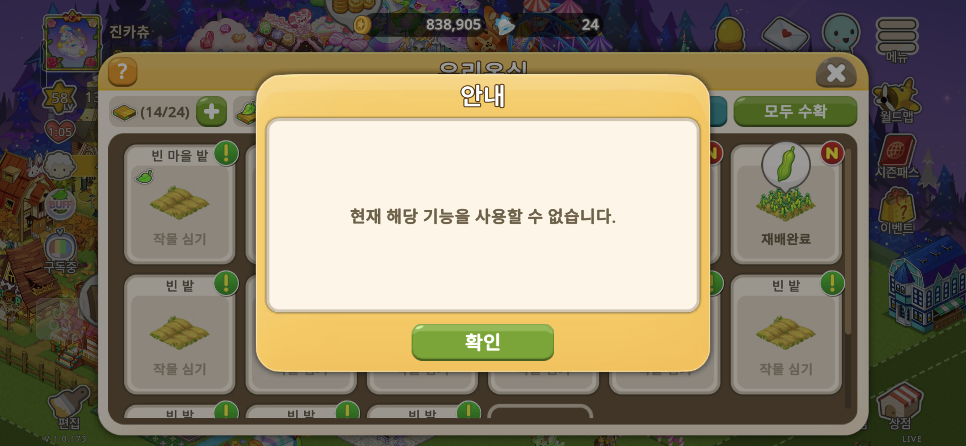 수확하려도하면 해당 alert창 뜨면서 수확이 안돼요ㅜㅜ