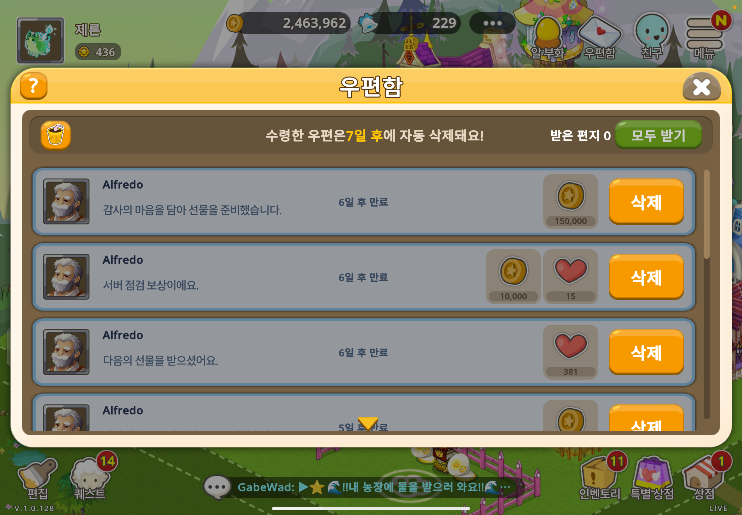 원래는 정 주러 왔던 분들로 표기 돼있었는데 친구 농장 다녀오니까 이렇게 돼있었네요