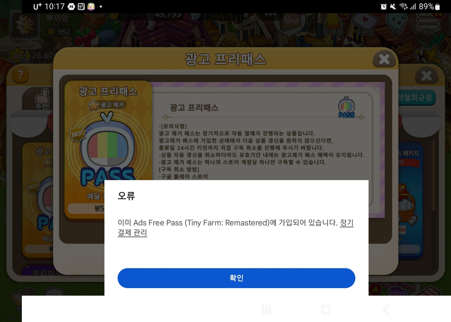 tkfkd9425 @gmail.com 쭈뚱호 (뿌까앙) 계정 정기 결제가 없는데 안됨