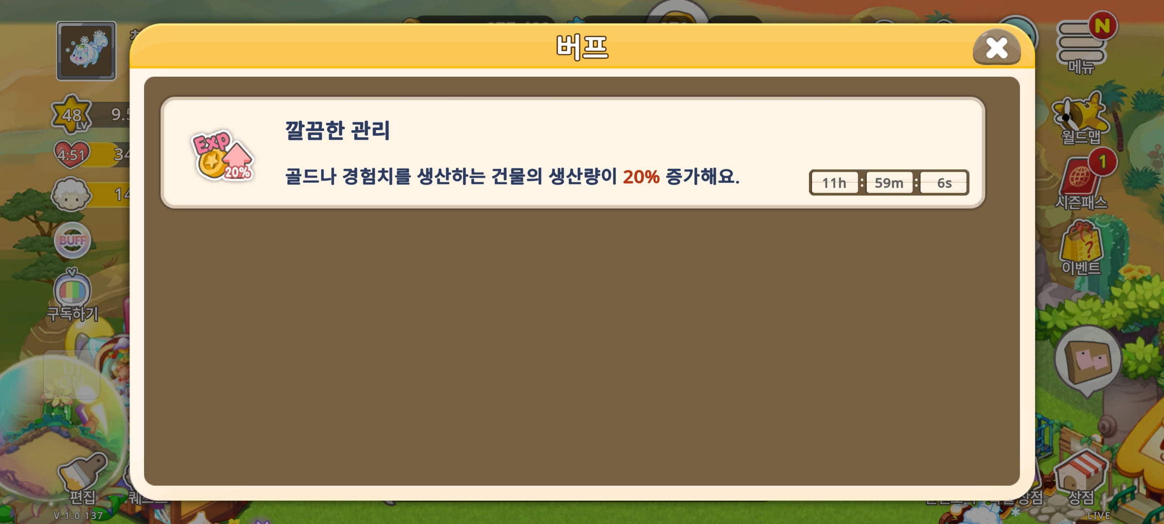 깔끔한 관리버프가 사파리존에서는 정상적용이 안되는거 같아서 확인부탁드립니다.