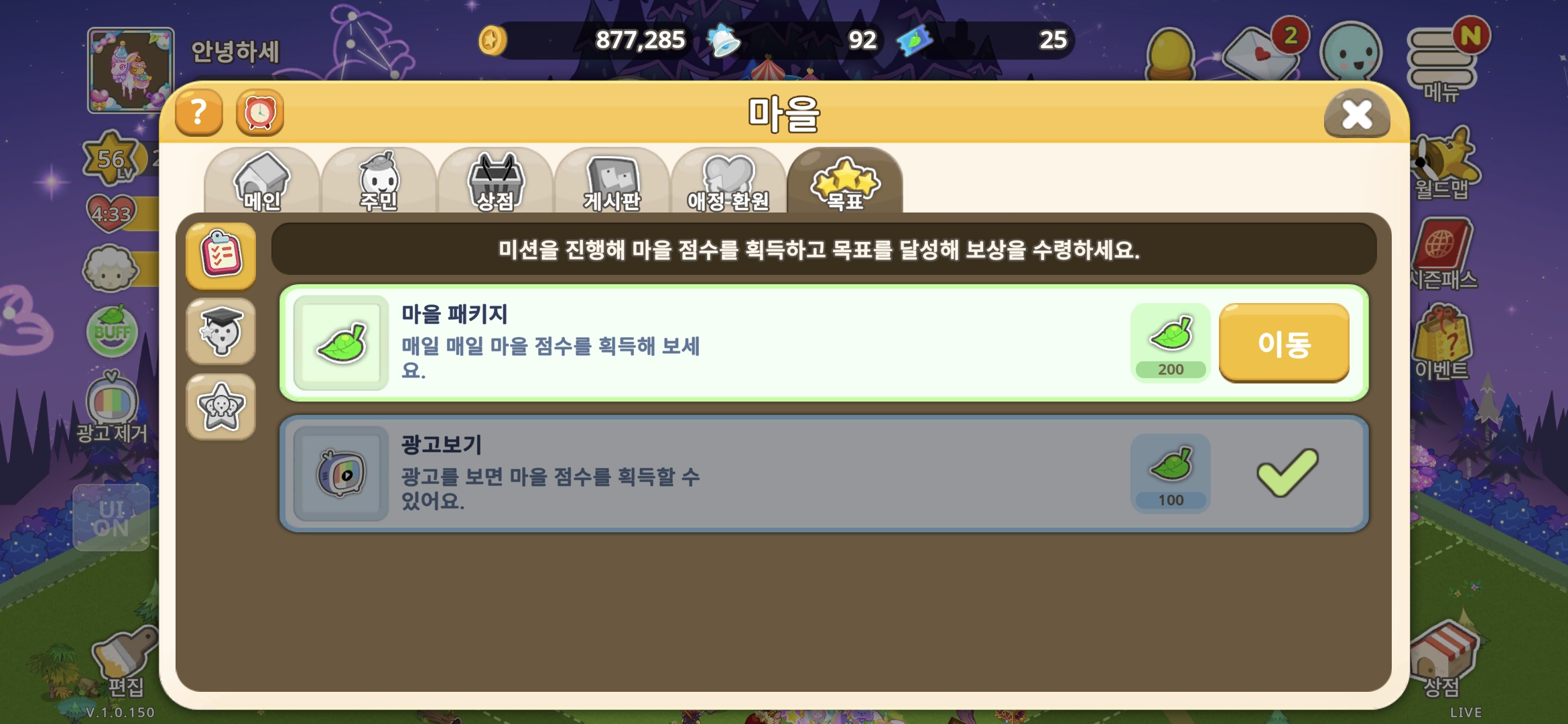 점수는 주는데 마을목표창에서 친구에게 정주기나 럭키코인 열기 이런 것들이 다 사라졌네요 의도인가요? 초보들은 잘 모를 거 같은데
