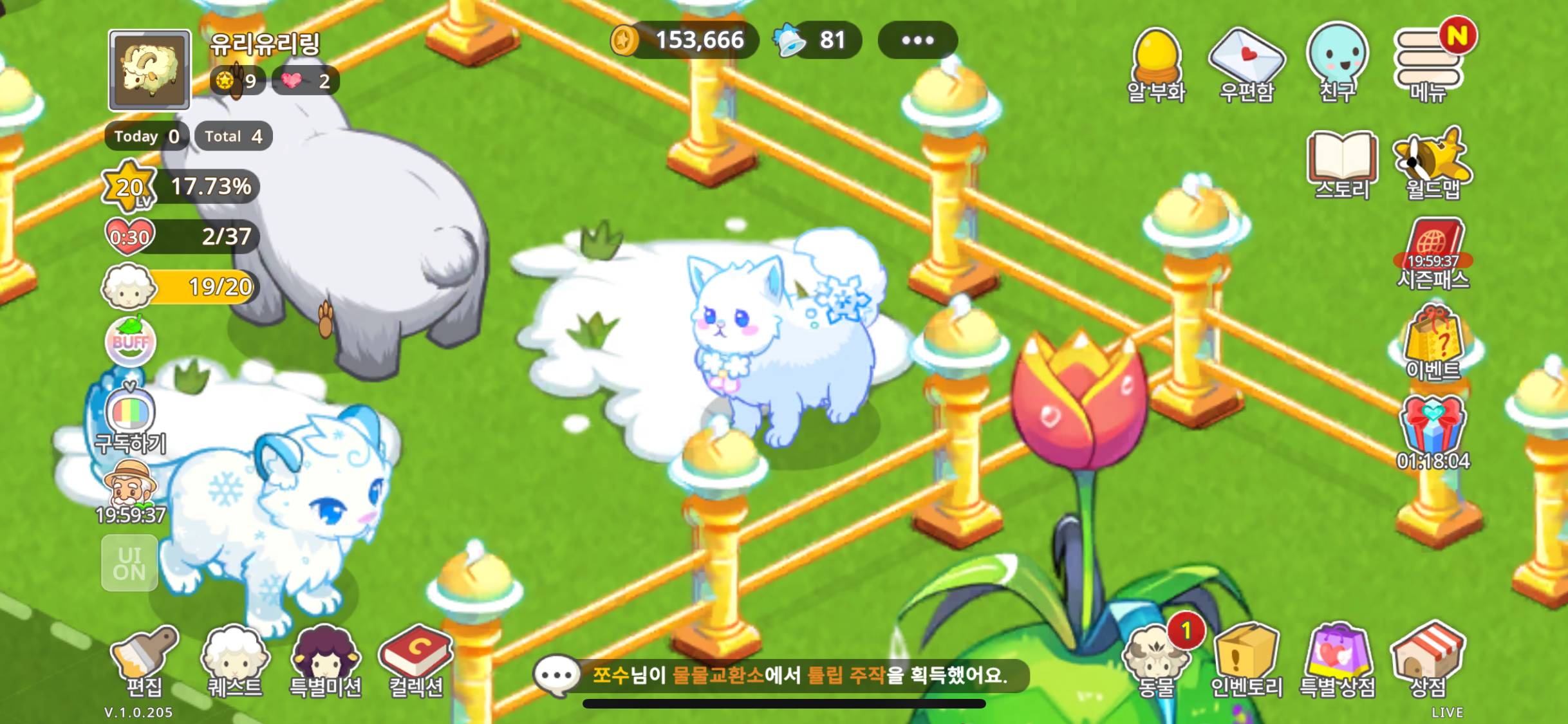 팍팍한 인생에 귀엽고 깜찍한 동물들을 보고 있으니 너무나 기분이 좋아집니다.. 오늘이 시작한 지 4일차 입니다. 앞으로 꾸준히 플레이 해보겠습니다!!