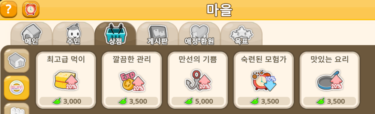 🍃골드 수급 마을 버프(버프는 마을 이장님만 구매 가능)