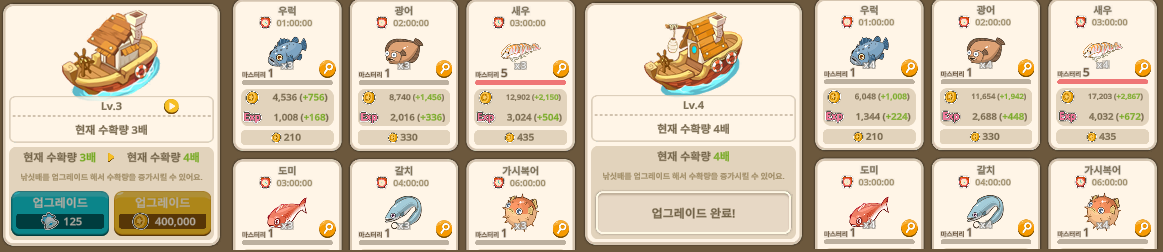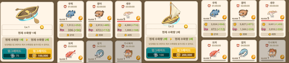 가능하다면(필수X, 여유 된다면) 고급 낚싯배로 업그레이드해 수익 극대화.
