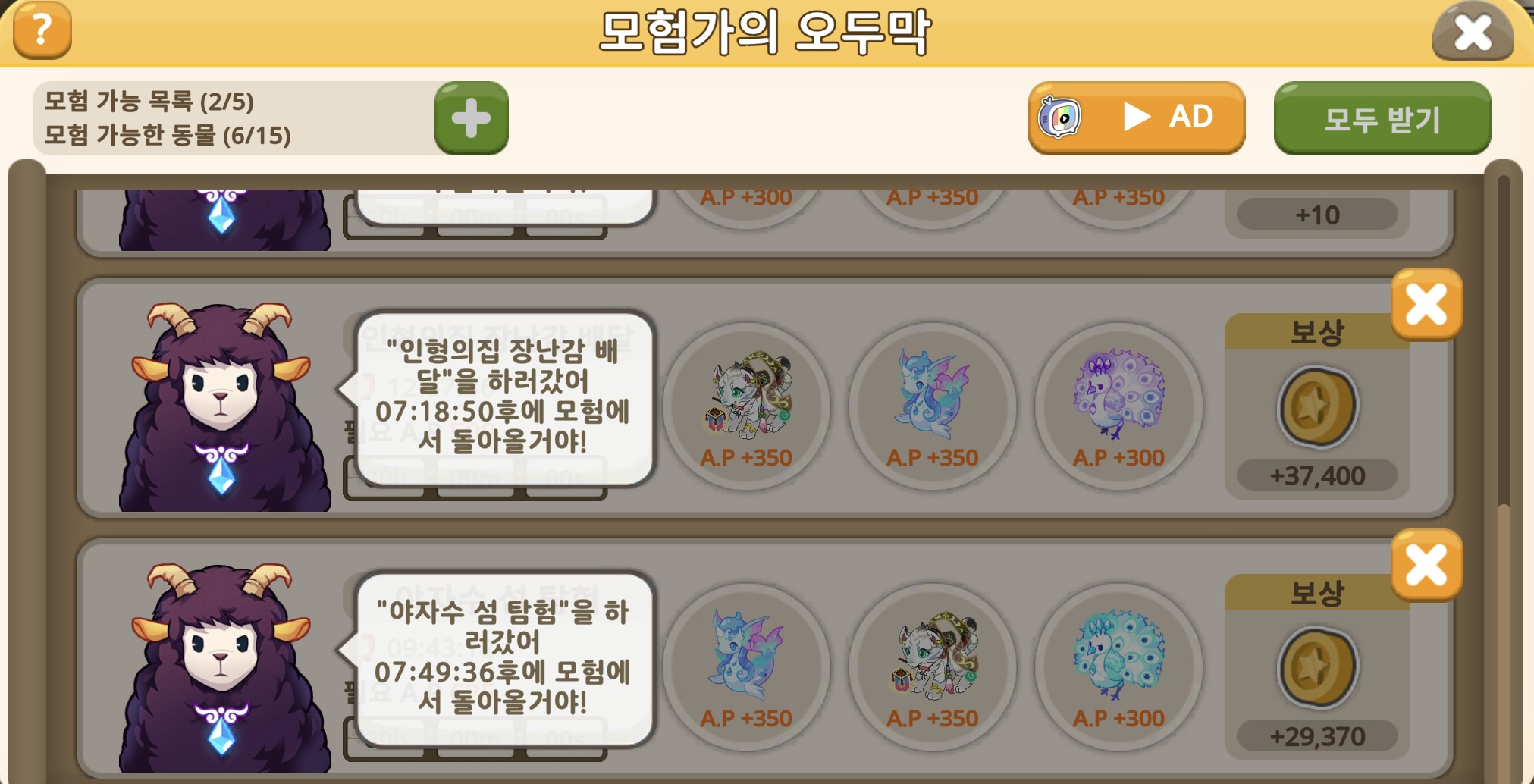 하지만, 모험에서는 필요한 A.P가 있으므로, 해당 AP에 맞게 모험을 보내야 합니다.