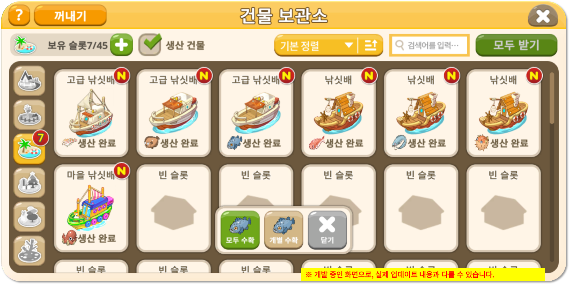 ◾ 낚싯배를 건물 보관소에 보관할 수 있도록 개선됩니다.