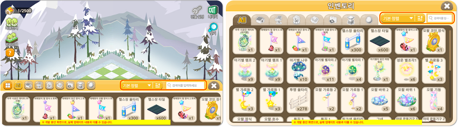◾편집 모드의 인벤토리에 정렬, 검색기능이 추가됩니다.
