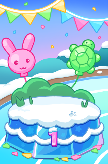 * 100회 출전 보상으로 눈꽃 달리기 동물 배경 획득 시, 토끼와 거북이 배지를 함께 획득할 수 있습니다.
