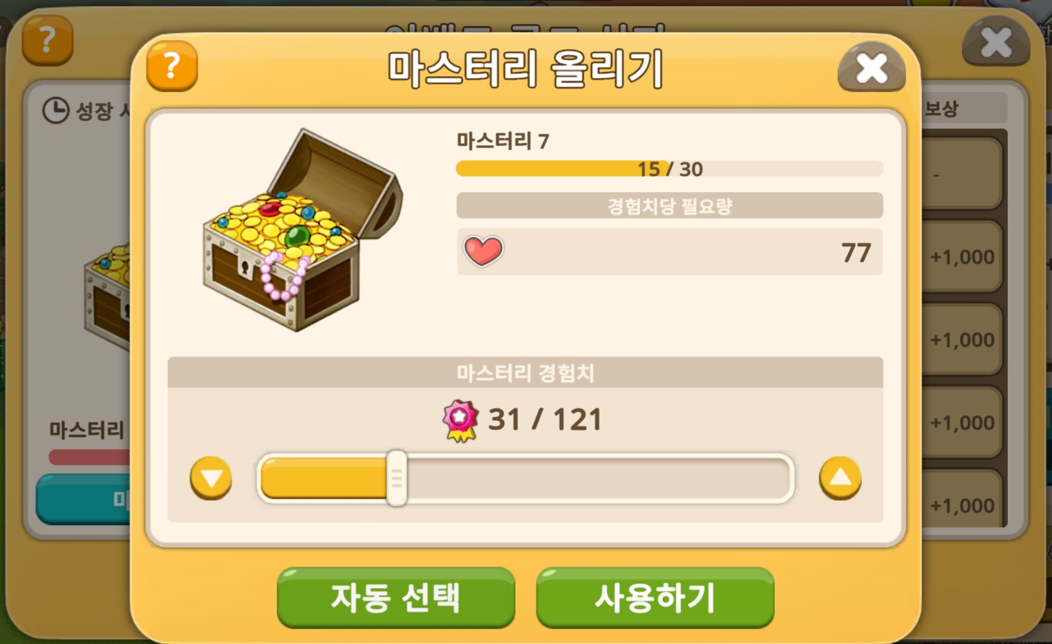 때문에 해당 구간(마스터리 7미만)에서 동물의 마스터리 올리기에서 소모재화 자동 선택 시, 무조건 실패처리 됩니다.