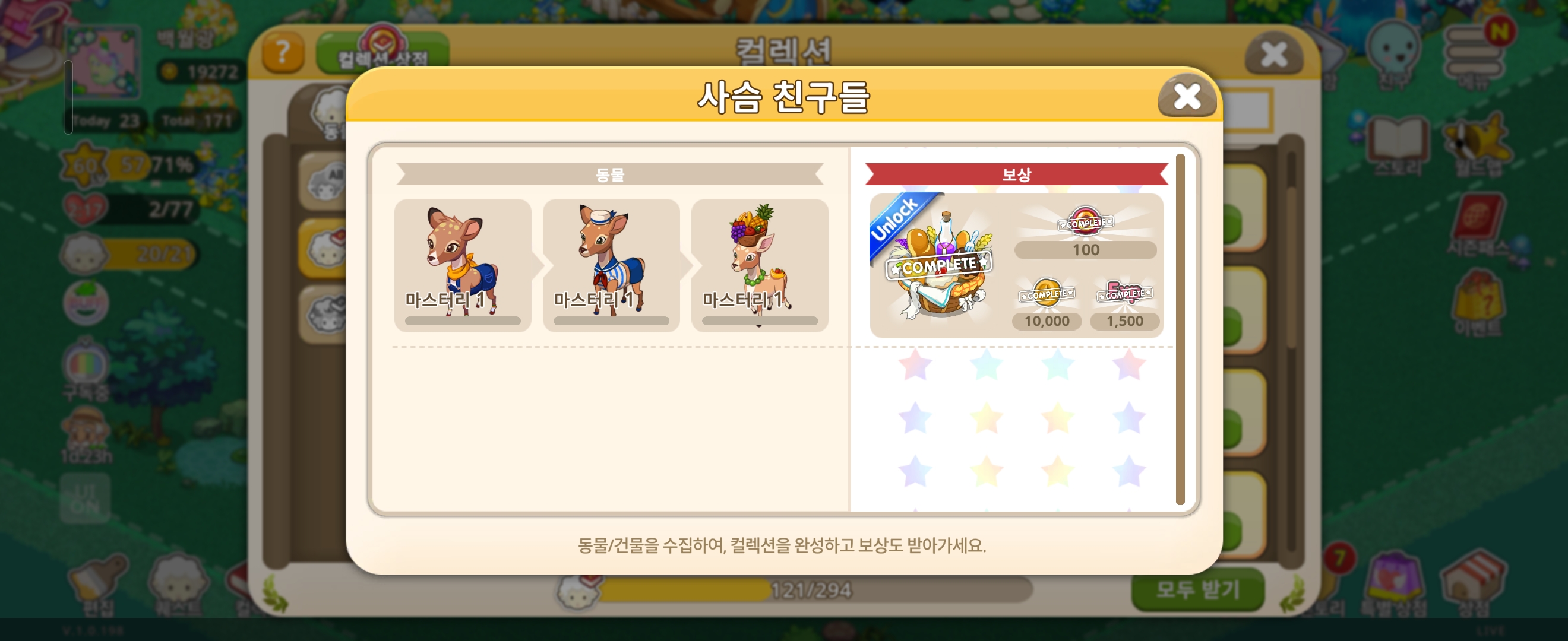 사슴친구들 컬렉션 완료 후 빵 장식물이 컬렉션 상점에 뜨지 않아 구매 불가한 상태