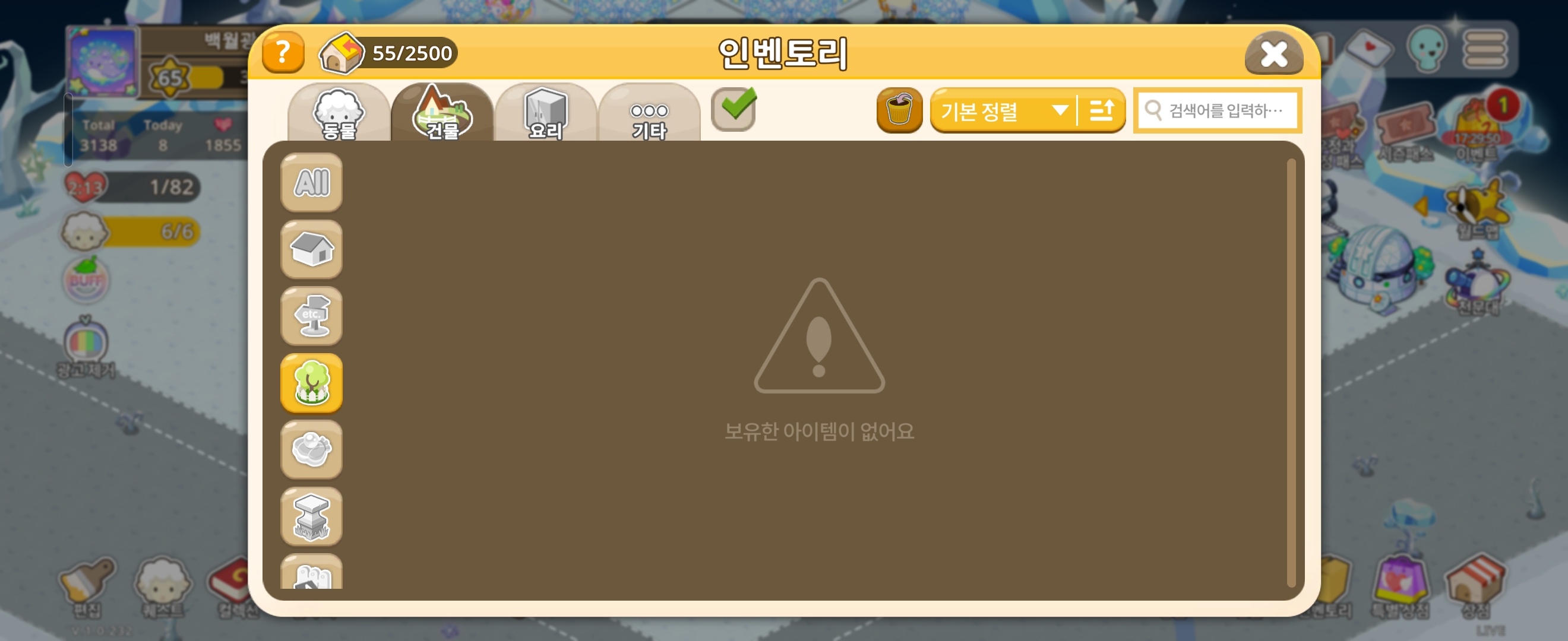 <타이니 행성을 꾸밀 아이템이 현저히 부족합니다.>