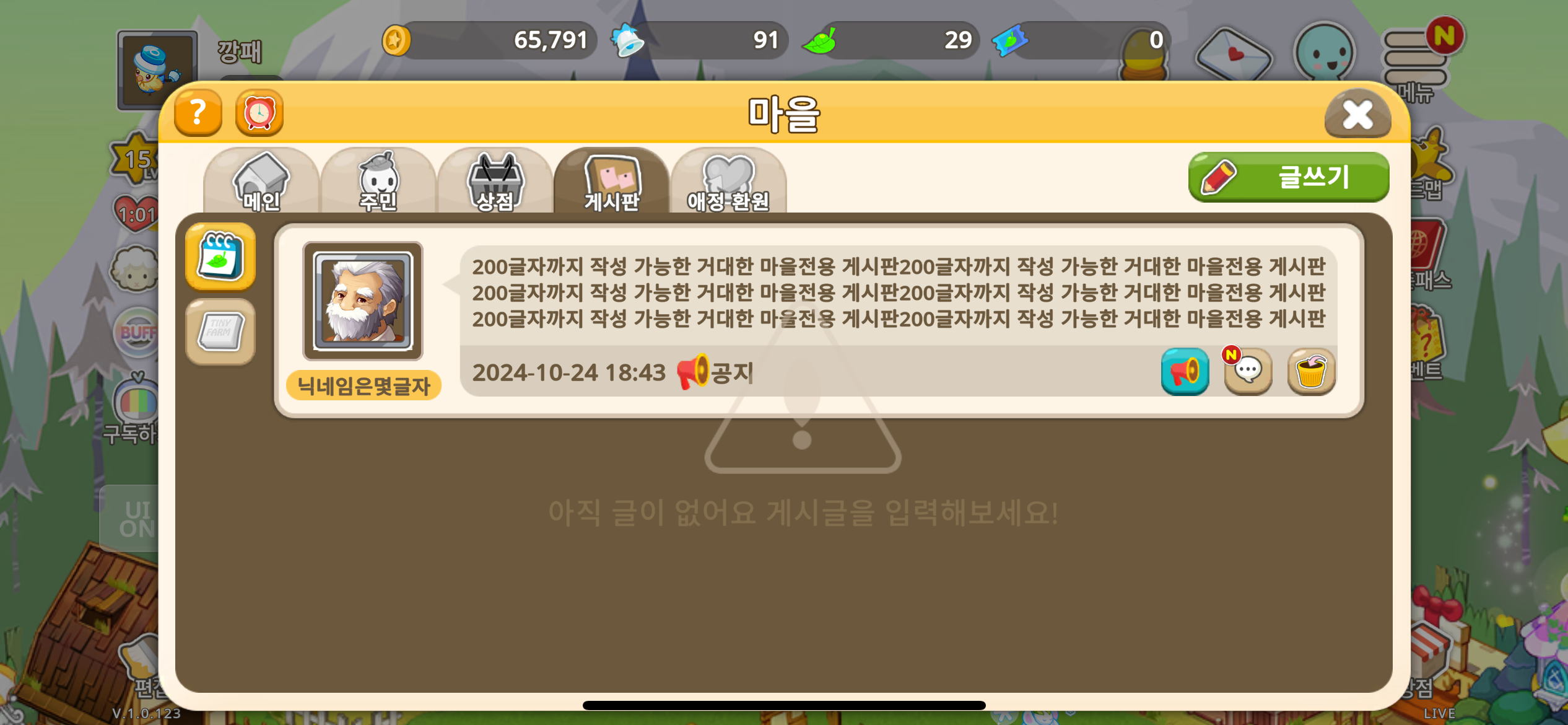 마을게시판 작성 누르면 렉 오지게 걸리다가 알프레도 할배인지 뭔지가 내 게시판에 무단작성하고 튐..;