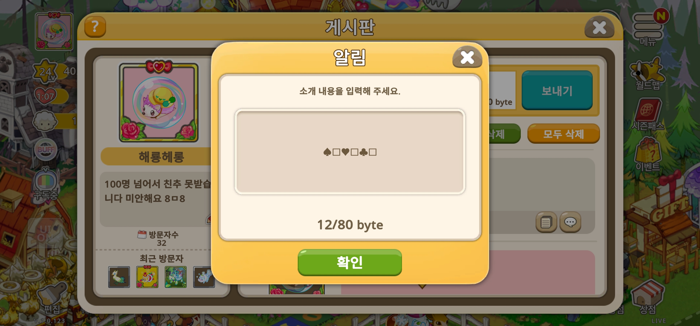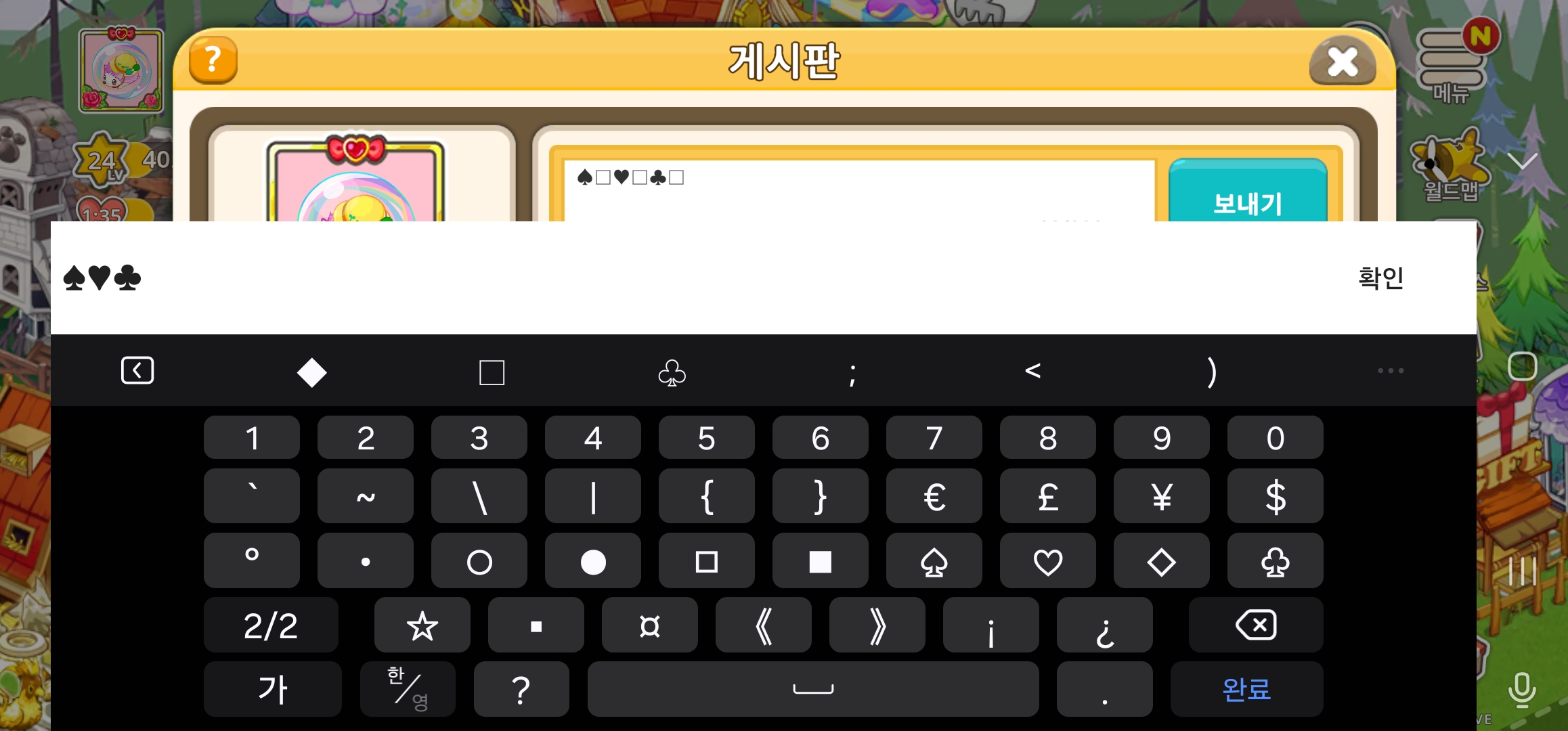 게시판이나 자기소개등등 글쓰는곳 어디든 ♠︎♥︎♣︎이걸 사용하면 ♠︎□ ♥︎□ ♣︎□로 보이는 현상이 있습니다. 고쳐주세요.