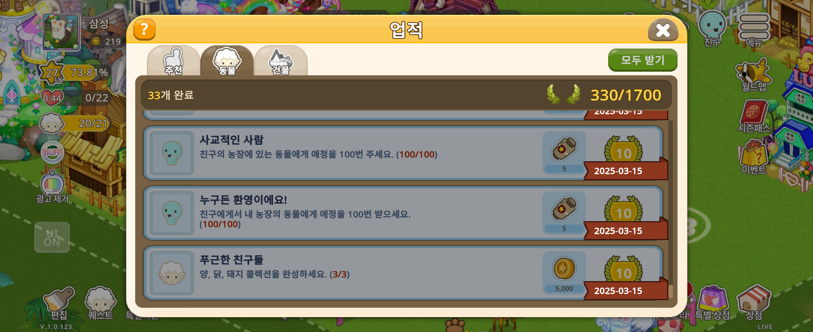 3.13에 달성한 업적들이 모두 최근 날짜로 바뀝니다.