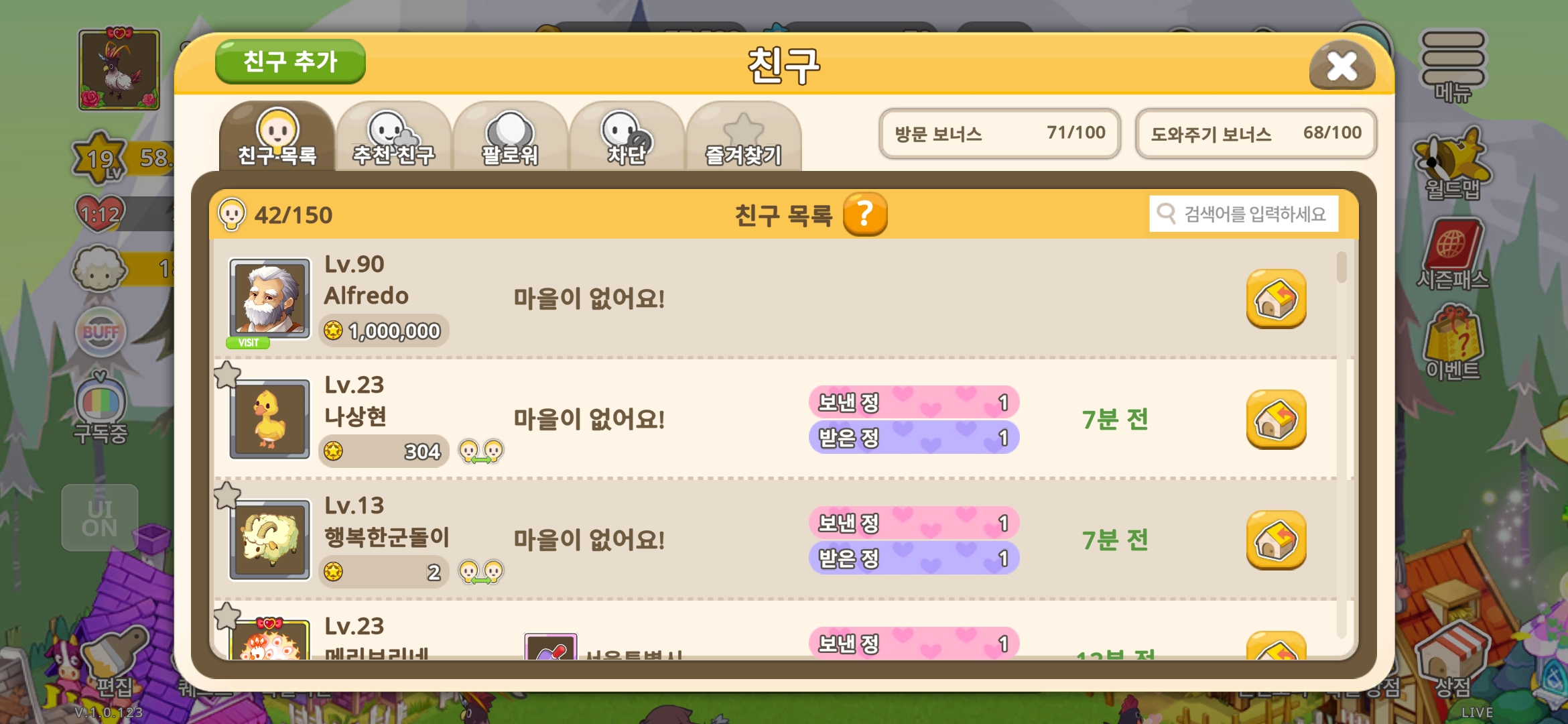 도와주기랑 방문하기 모두 아직 반도 못했는데 친추해서 농장에 방문해도 보상이 없고 애정도 보내지지 않습니다..!!