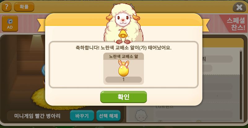 1. 노란색 / 보란색 교배소 알의 확률 정보가 미 표기 인데