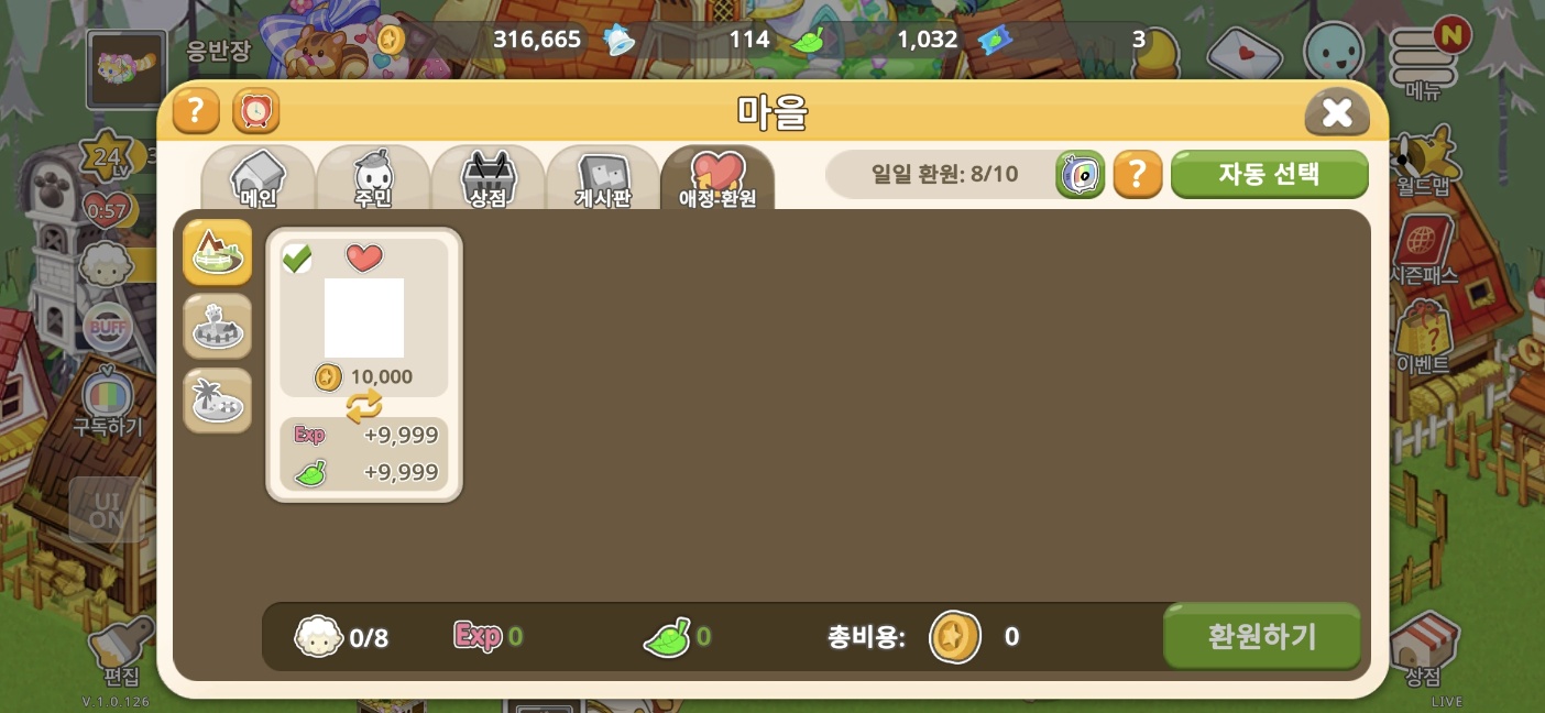 환원 목록에는 있는데, 이미지도 안뜨고 아래 총 경험치나 비용도 안뜨고,