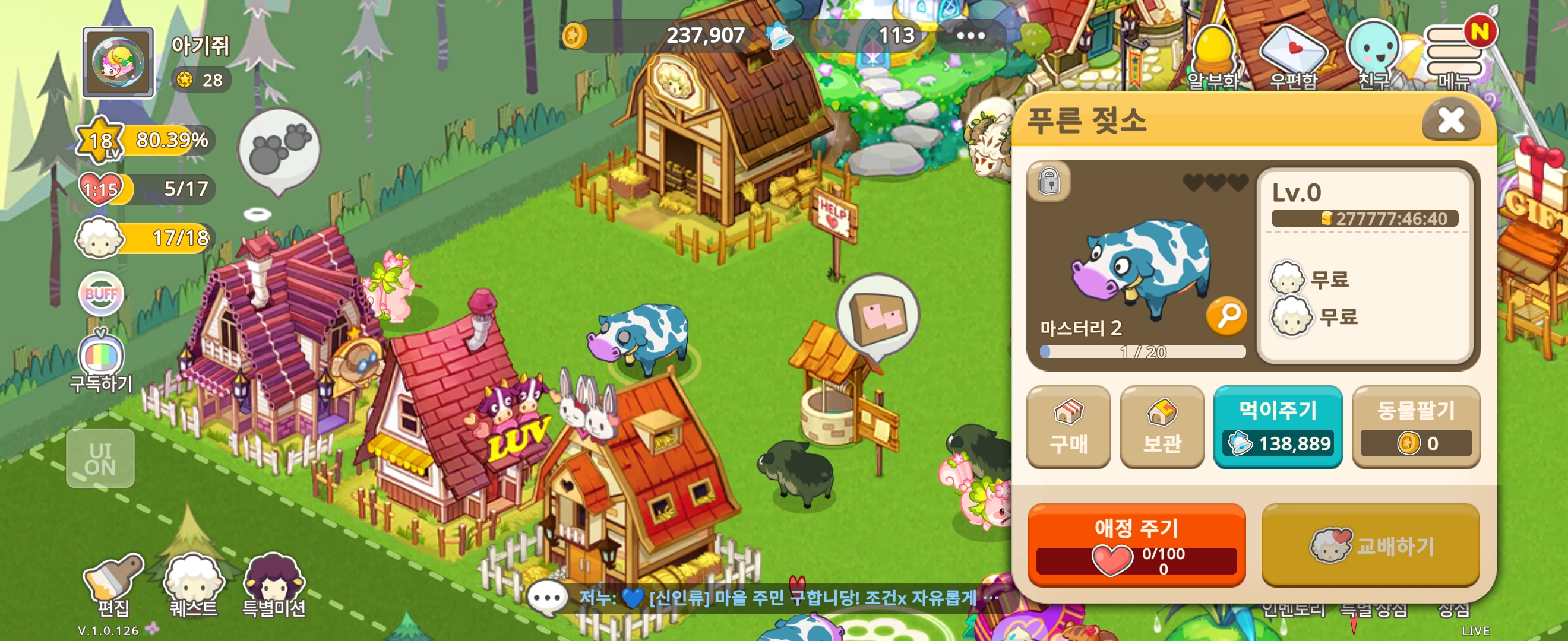 푸른젖소 애정이랑 밥주기 오류인거 같아요