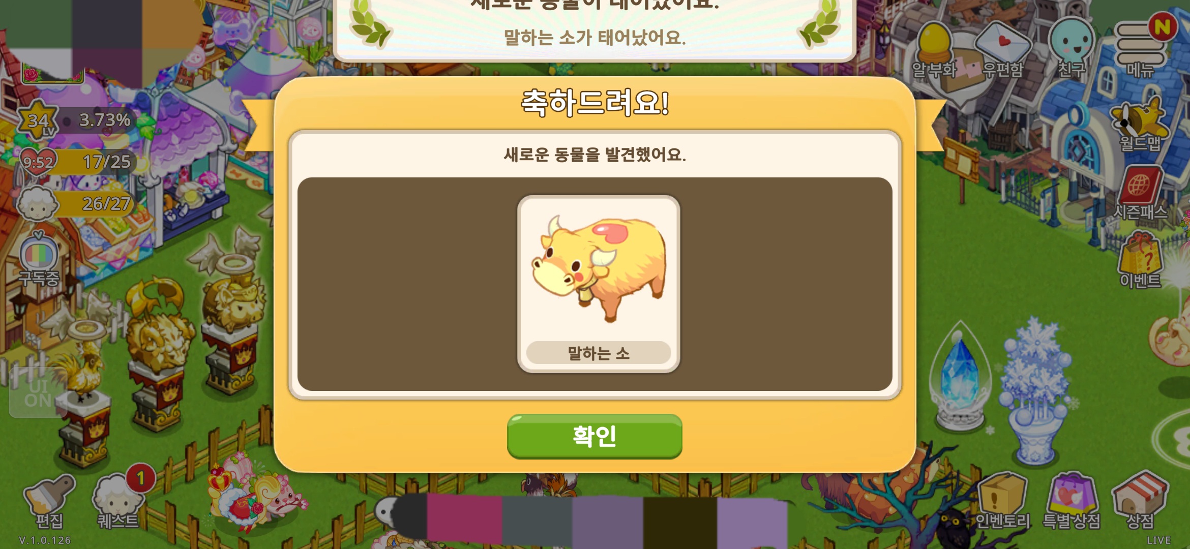 퀘스트 미루다가 31렙 찍고 천천히 하려고 검은소 교배하는데
