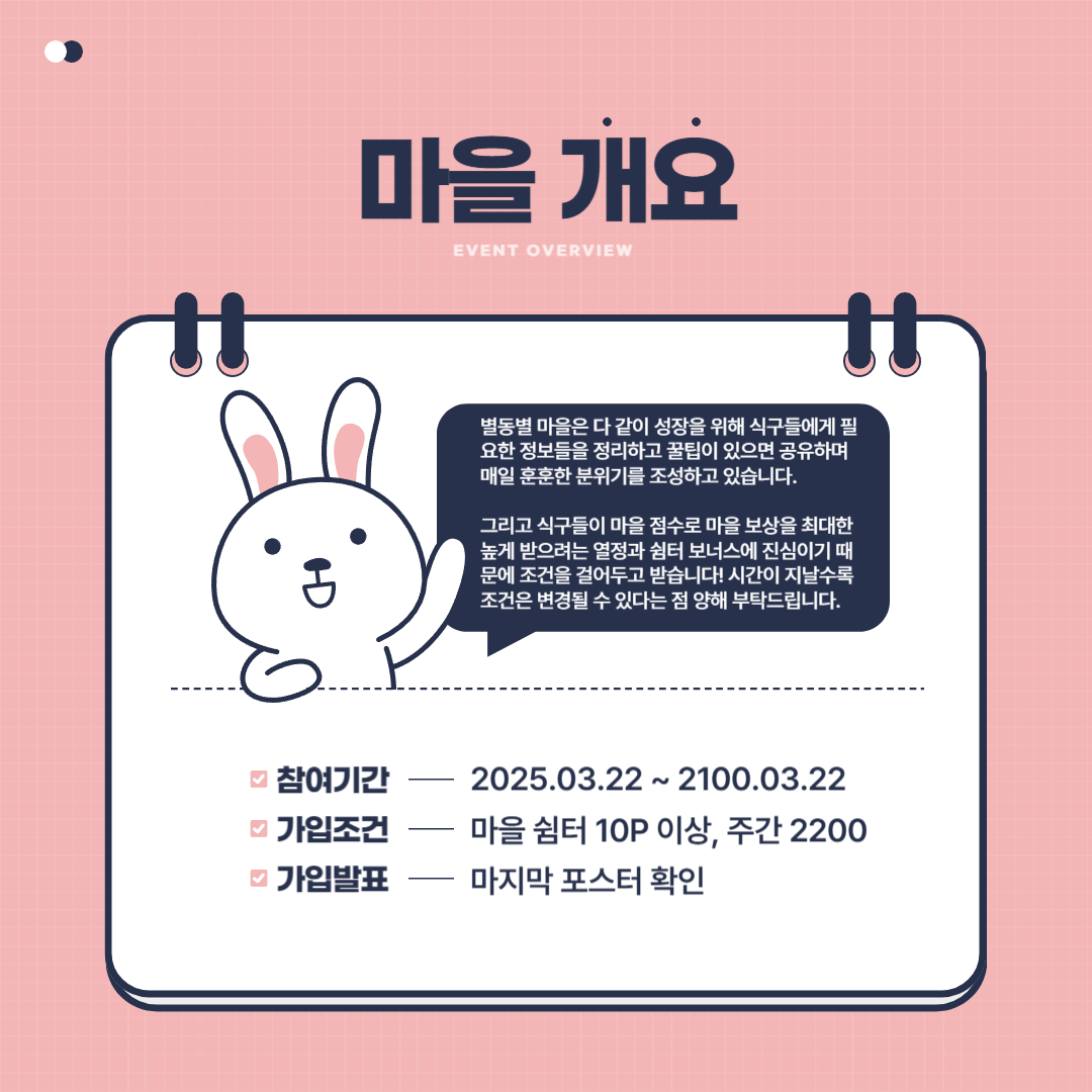 전체글 '별동별' 마을에서 마을원 모집합니다. 소나무 2025-03-21 15:57 69 0 공유 공유 URL 복사 페이스북 왓츠앱 카카오톡 라인 레딧 닫기 공유 0 0 댓글 0 삭제 이미지첨부 0/3000 등록