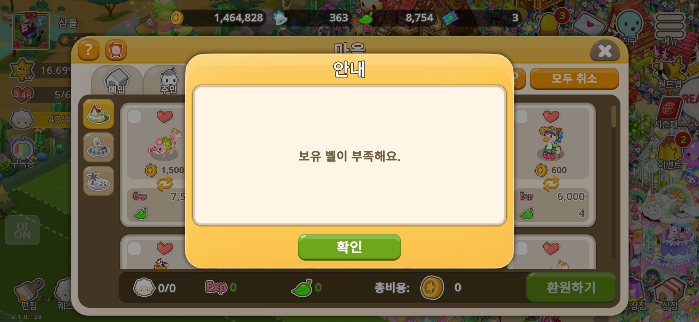현재도 이럽니다 혹시나 해서 11,000원 패키지 구매를 또 해보고 나서 누르니 또 이러네요 할거 다 해봤고 문의도 넣었는데 진짜 제발 퐉인 좀 해주세요 마을 점수 손해본건 보상 해주시나요? 하…