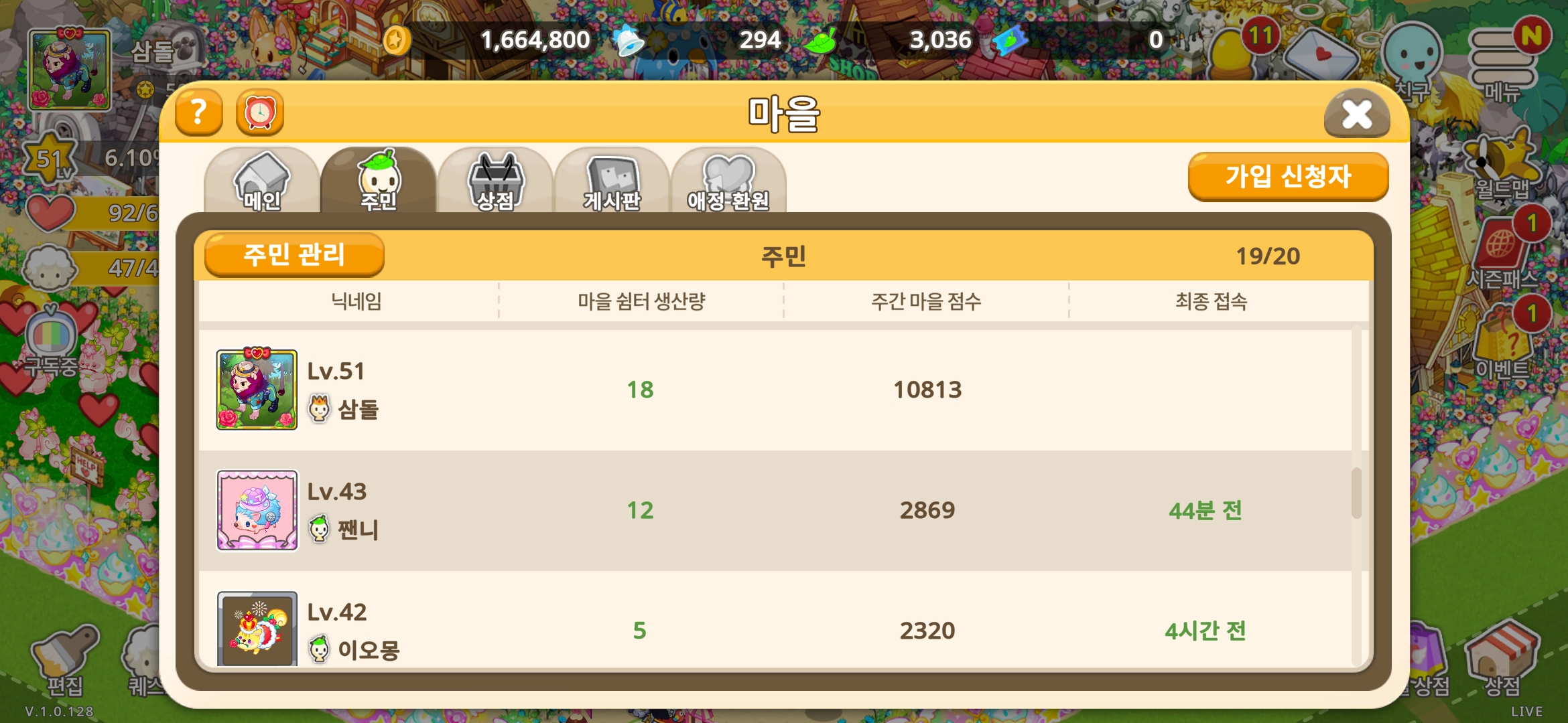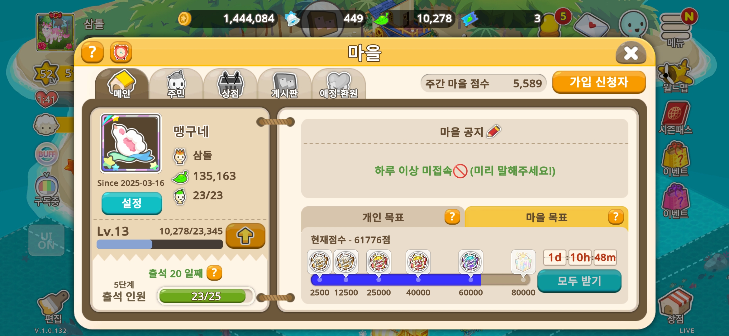 마을 이장으로써 1만점 주간으로 열일 하고 있습니다!!