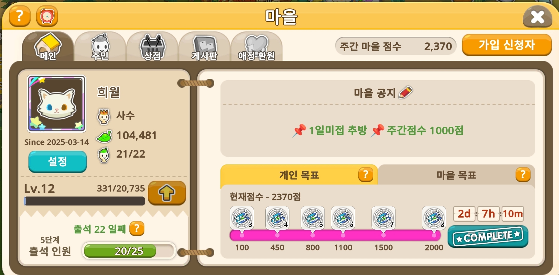 주간점수 1500점 이상 가능하신분 가입신청 넣어주세요