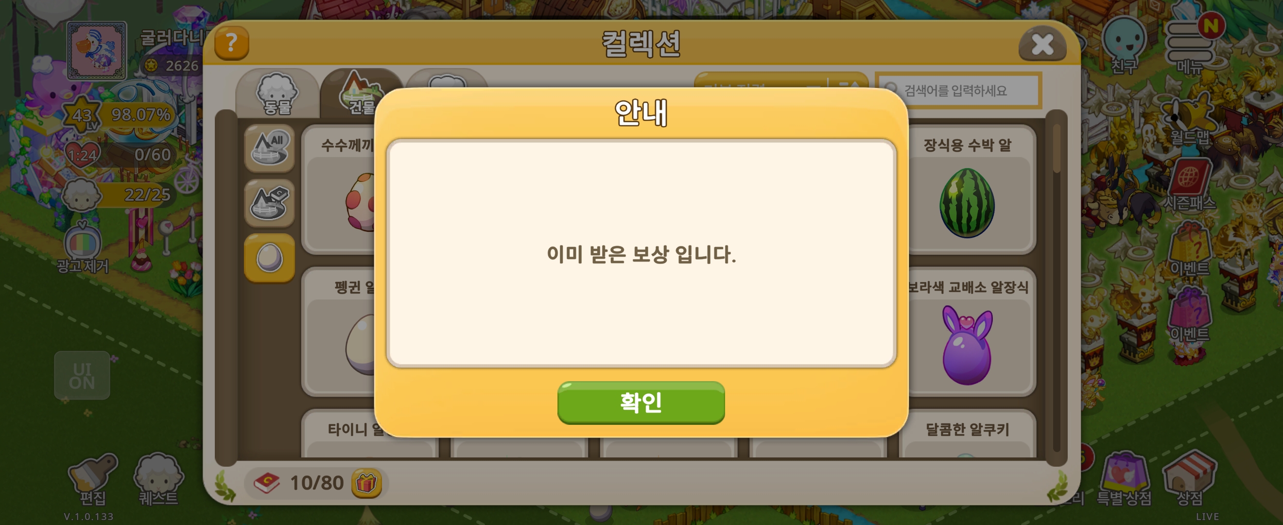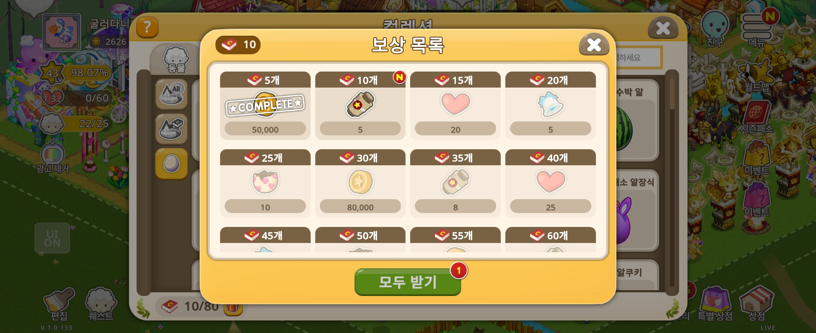 알 10개 모으면 보상 받을 수 있는 거 같은데 컬렉션에 숫자 1 알림도 안보임