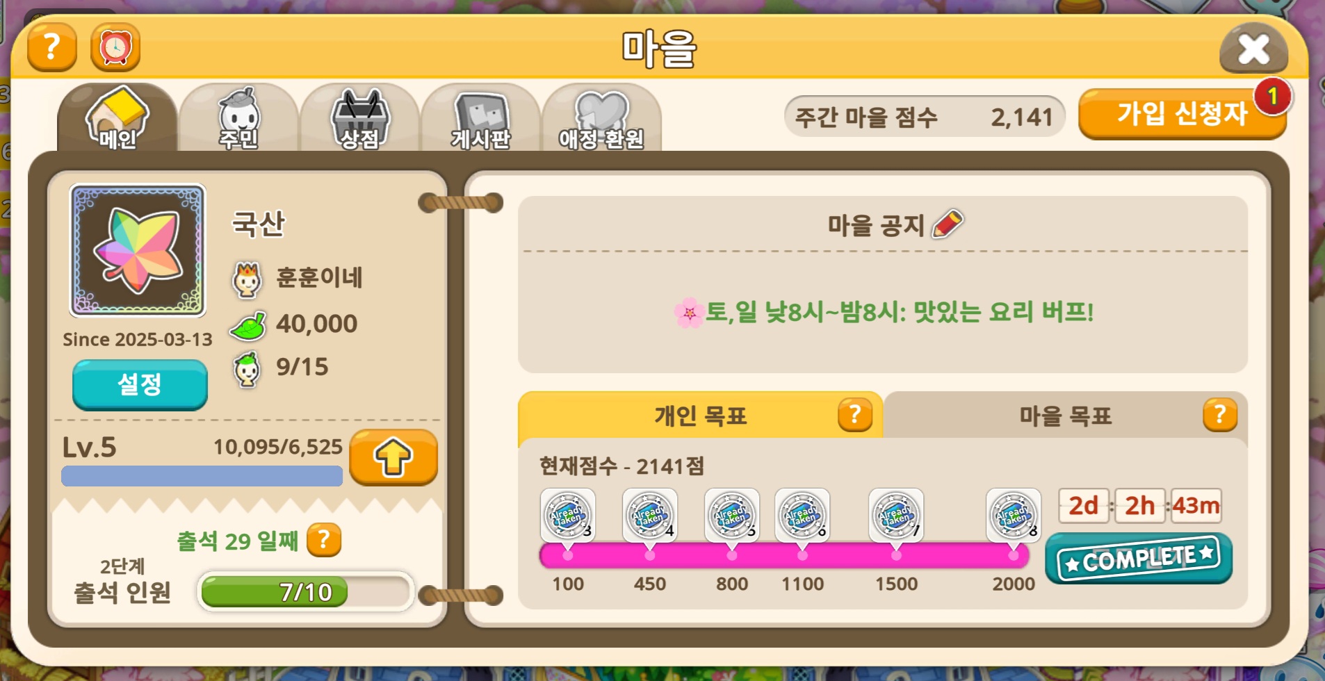 🌸마을게시판 위주로 소통하구요, 편하게 힐링게임 오래 같이 하실분 오셔요~