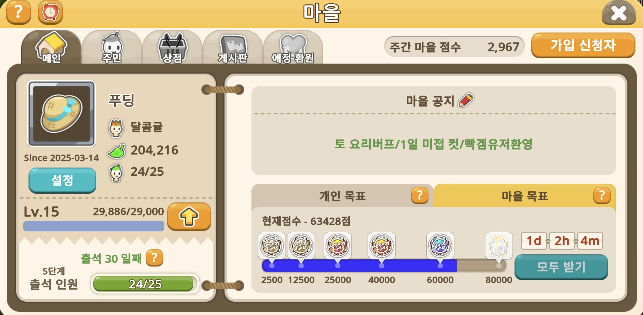 [예비] 16LV 마을 [푸딩]에서 주민 모집합니다 (0/2)