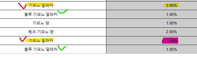 [ 게임 내 확률 정보 ] > [ 알 부화 ] > 황금빛알 확률 표 참고 자료