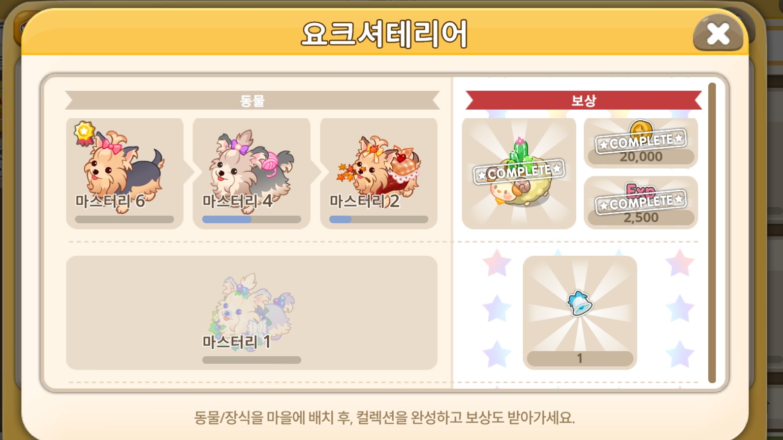 요크셔테리어 컬렉션 보다가 최종보상이 겨우 1벨인거 보고 좀 아닌거 같아서 씁니다