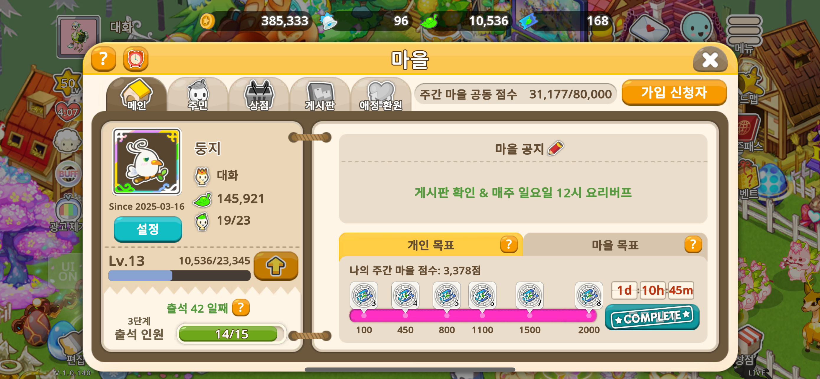 - 2. 주간마을 점수 제일 많이 모은 두 분 선정 후 왕관 나눔