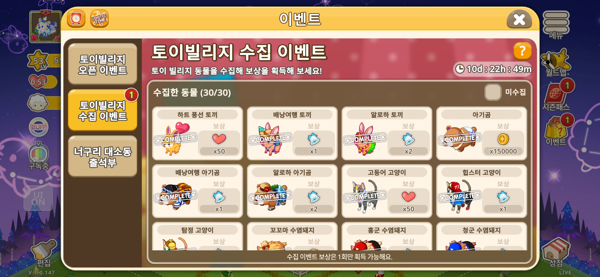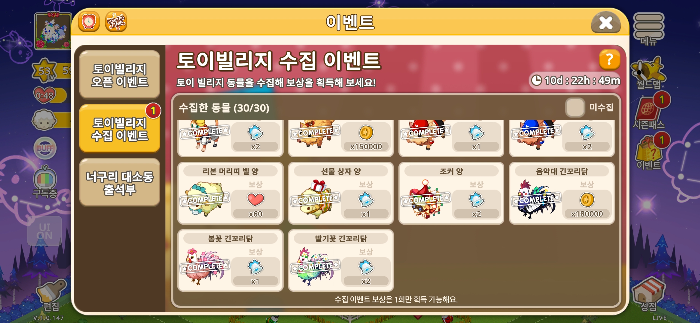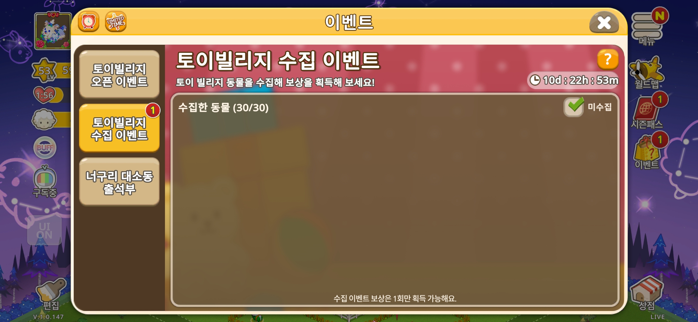 보시다시피 모든 보상을 다 받았는데도 왼쪽 1이 사라지지 않습니다. 수정 부탁드립니다.
