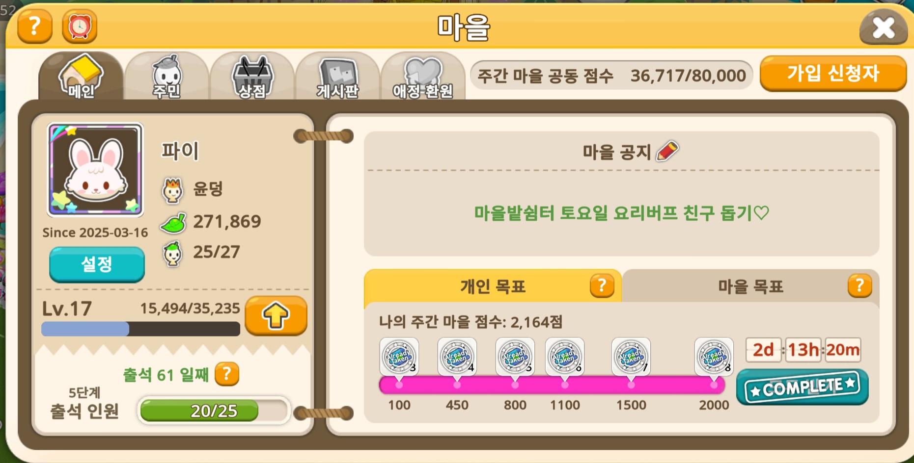 [주민 모집] lv.17 [파이] 초보환영 2자리 남았어용 저희마을 오셔서 즐겁게 타팜 하