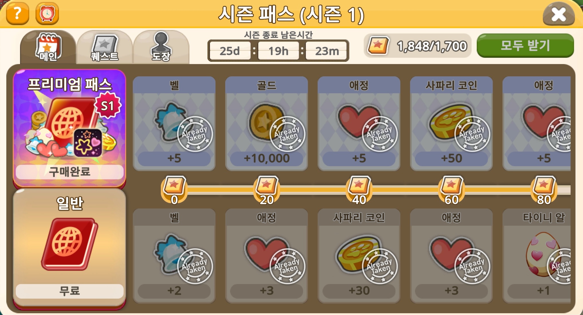요즘 매일 뜨는 패스 퀘스트 알림이 이젠 제게 짐처럼 느껴져요 ㅠㅠ (아무 보상이 없으니)