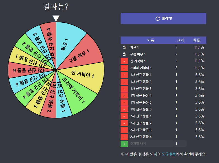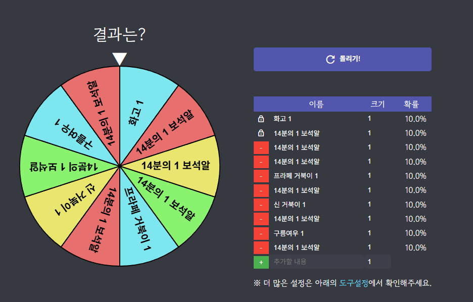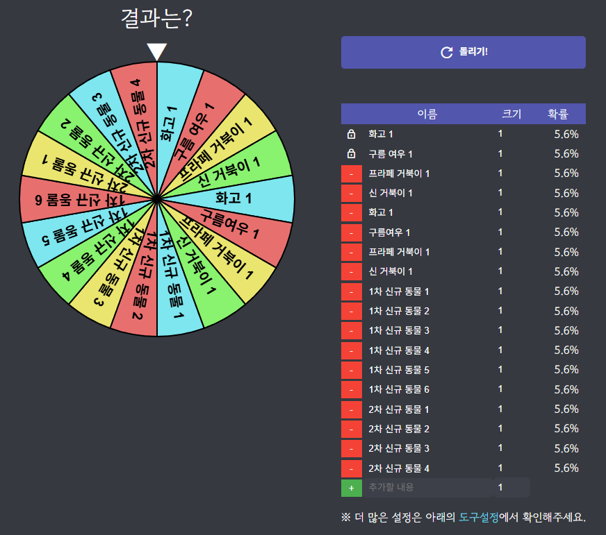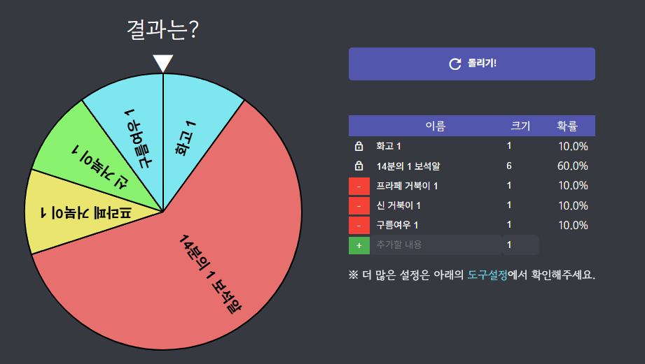 이것이 이번에 보상으로 받은 알의 확률이죠.