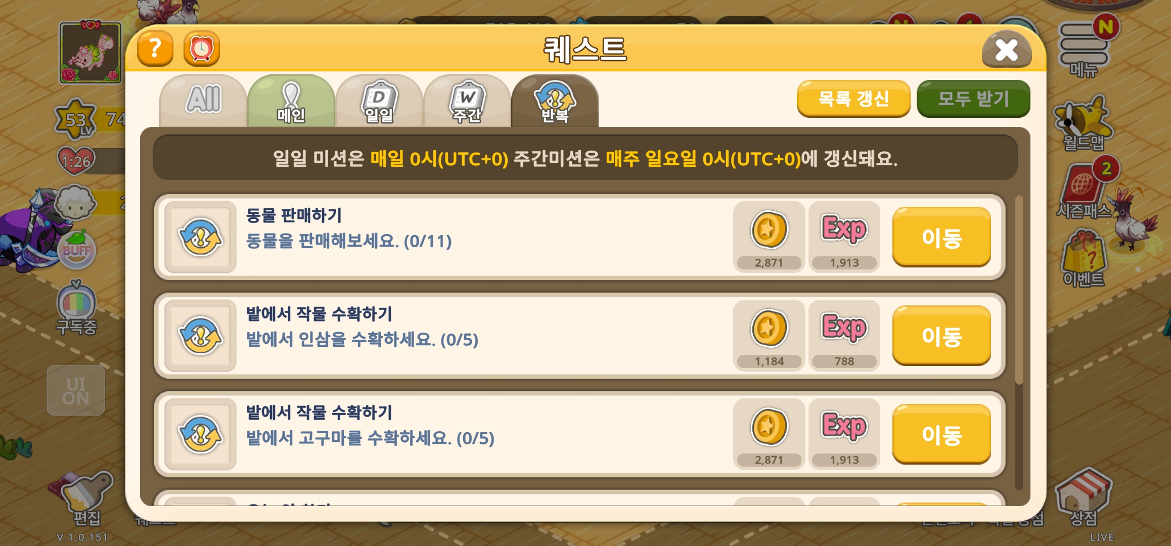 동물협회에 판매하면 반복퀘스트 중에 동물 판매 퀘스트 카운트가 안되는데 설계하신 부분인가요?