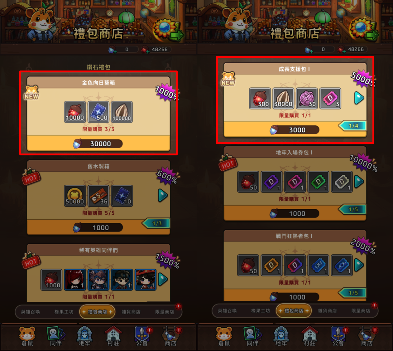 - 金色向日葵禮盒:可獲得紅寶堅果與英雄召喚券「向日葵種子」。