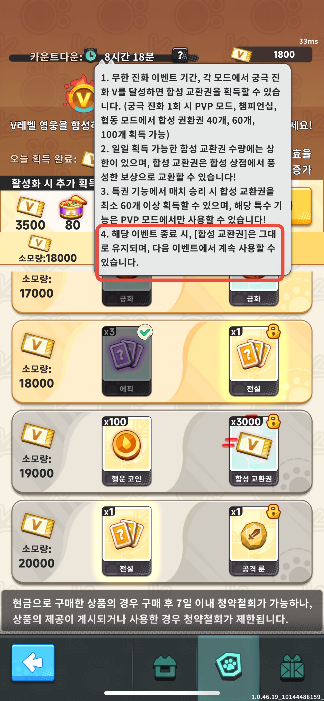 무한진화이벤트 합성 교환건 유되느는거 맞죠??? 공지보고 1800개 미사용하였는데 유지될거라 믿습니다.