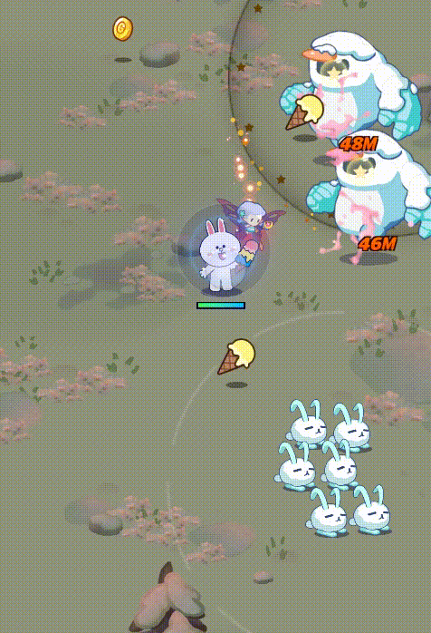 We've got footage of CONY as well. When she drops vanilla ice cream, if a Champion eats it, a giant ice cream crashes down, and any monsters caught in it take massive damage from Champions. The timing and manner of eating the ice cream have a big impact, so it's fun to play around with. Since CONY can only generate up to three scoops at a time and they don't stack, the key is to eat them wisely.