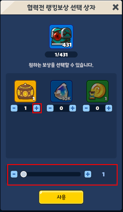 In the example below, pressing the plus button will bring up a slider, allowing you to quickly and easily choose the number of rewards you want.